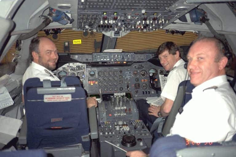I had the wonderful opportunity to visit the flight deck of a British Airways 747-100 when I flew to London in March, 1996. I was able to take some photos as we were on approach to Heathrow, as well as some of the aircraft we taxied past on the way to the gate (including a British Asia Airways 747-400).